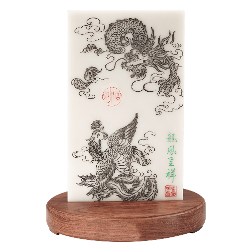 WHITE INKSTONE ROYAL EMBLEM (DRAGON AND PHOENIX)